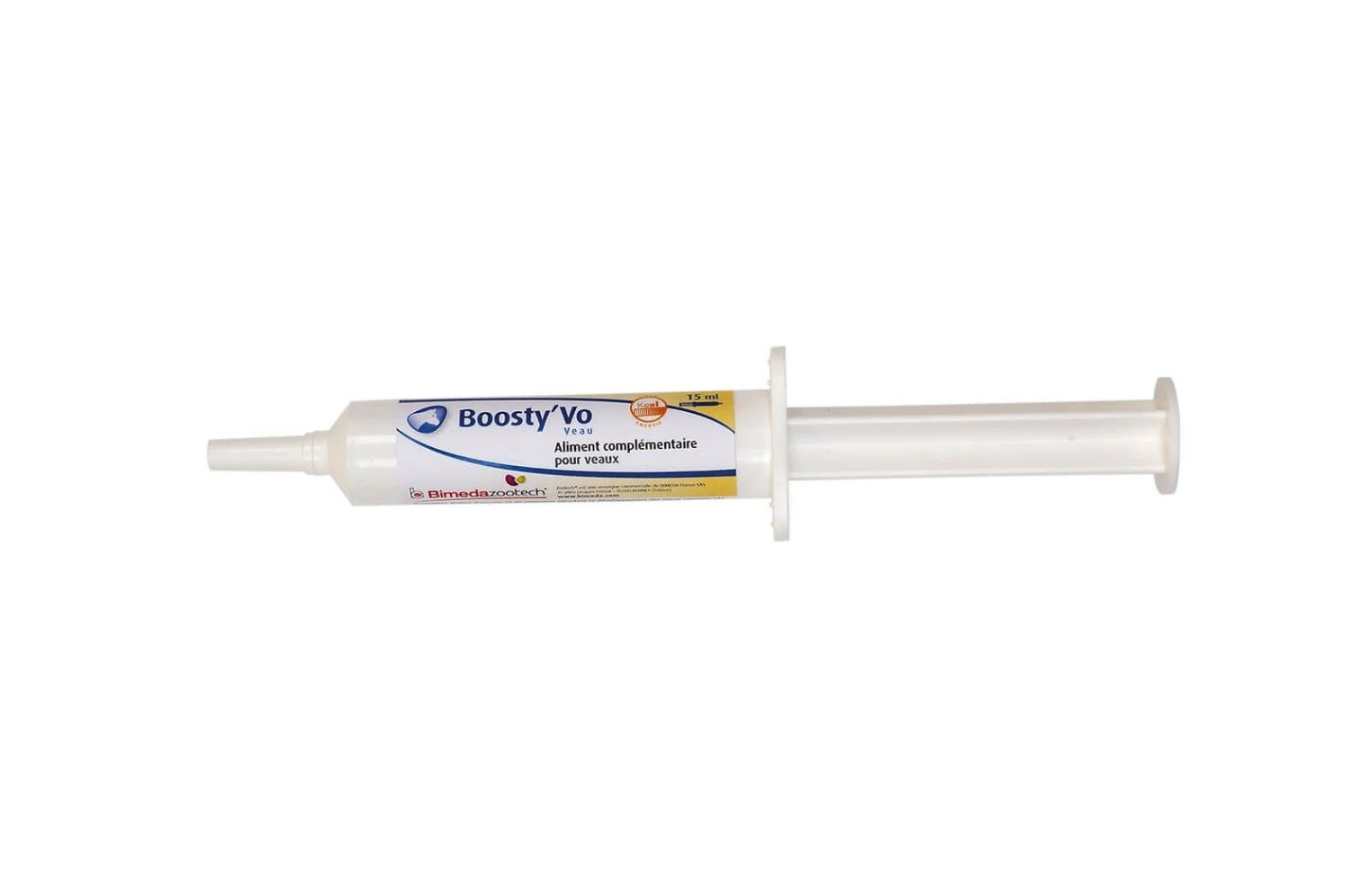 Boosty’ Vo est un supplément nutritionnel énergétique et colostral sous forme de gel oral pour veaux nouveau-nés faibles.
