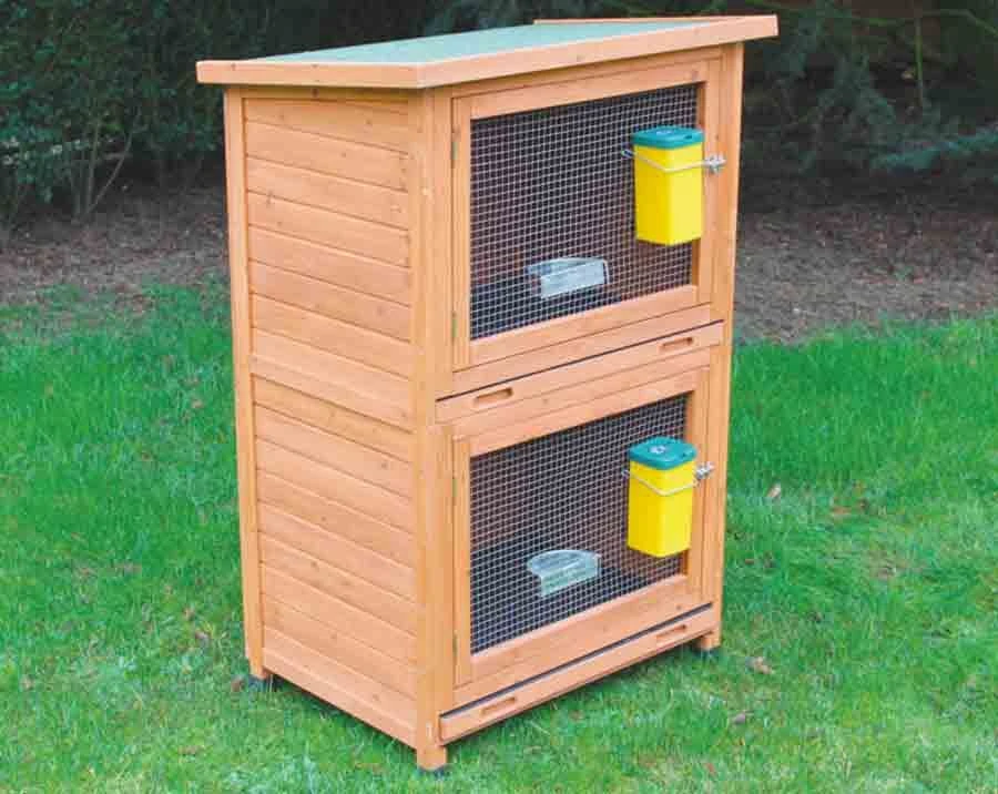 2 grandes cases superposées de 72 x 51 x 54 cm pour 2 lapines avec leurs jeunes ou jusqu’à 4 lapins adultes.