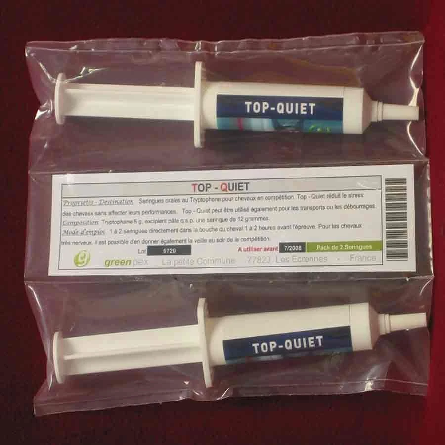 Top Quiet de Green Pex est une solution pour réduire le stress de votre cheval. Tout particulièrement adapté au cheval de compétition il permettra de détendre celui-ci avant une compétition pour son bien-être. Votre cheval se sentira mieux sans que ces performances ne soient affecter.