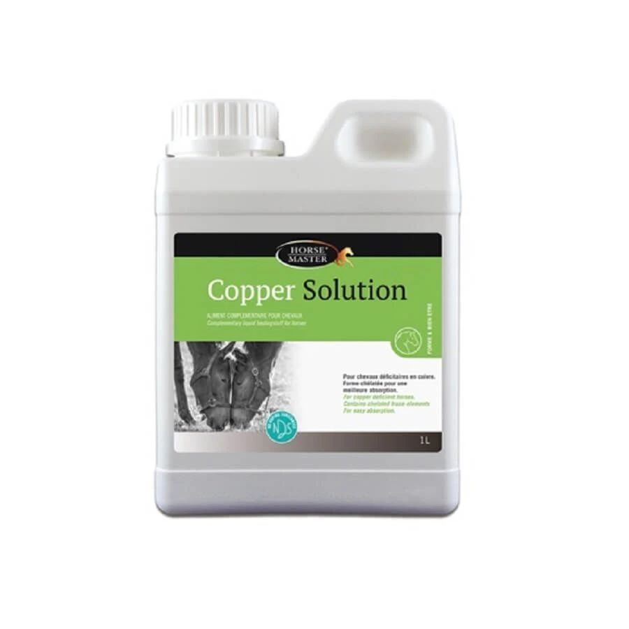 Copper Solution de chez Horse Master est un complément alimentaire spécialement conçu pour votre cheval souffrant de carences en cuivre. L’apport en cuivre étant un élément très important pour votre cheval, il est important qu’il n’en manque pas.