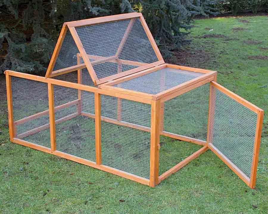 - Une porte en bout de parcours permet de laisser sortir les volailles tandis que le dessus s’ouvre sur les 2/3 pour un accès facile.