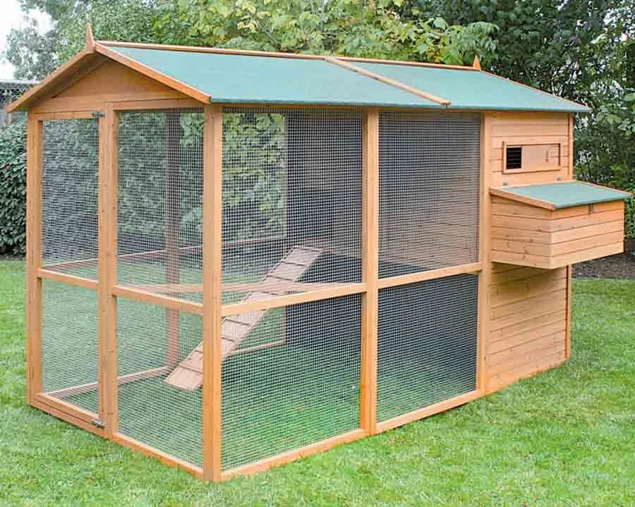 De tout confort, il comprend une volière couverte avec perchoir, un abri avec 2 perchoirs et 2 trappes de ventilation coulissantes et un pondoir à 3 compartiments.