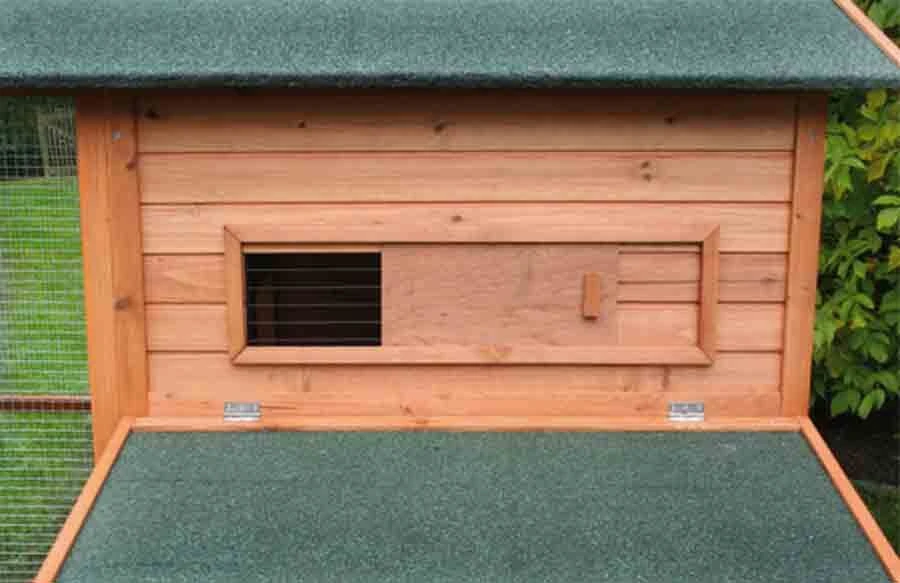 De plus, le pondoir est accessible de l’extérieur pour pouvoir ramasser les oeufs sans affoler les poules.
