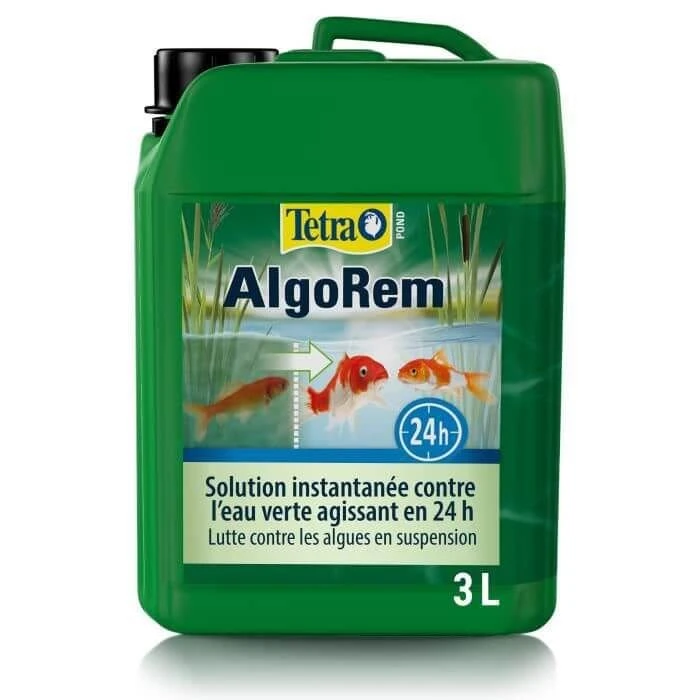La solution Tetra Pond AlgoRem agit comme un traitement de l’eau efficace qui clarifie l’eau en 24 heures. Elle élimine l’eau verte et limite la formation des Algues. Les premiers effets sont visibles en quelques heures.