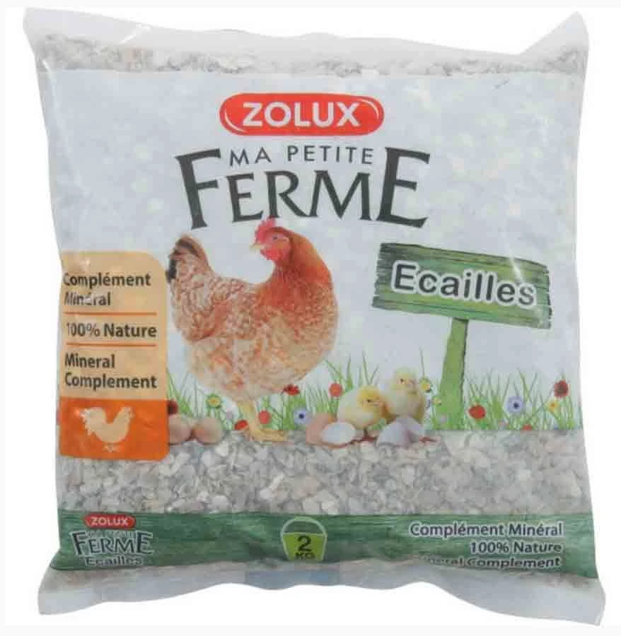 Zolux Ecailles pour poule est un aliment complémentaire avec un apport en calcium et minéraux indispensables à la ponte et à la croissance.