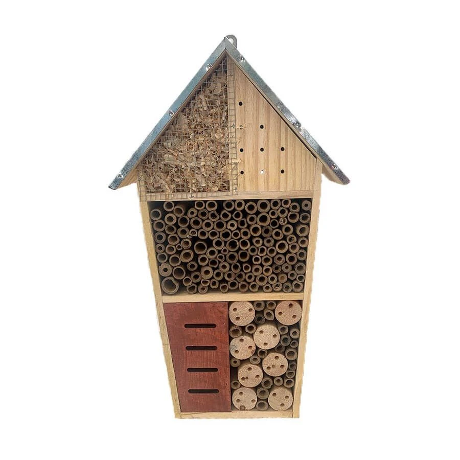 On estime que chaque année jusqu’à 1 à 2% des espèces d’insectes disparaissent chaque année, les causes sont nombreuses et diverses telles que l’urbanisation ou les insecticides. Le nid à insectes permet de protéger ces animaux qui sont essentiels à la biodiversité : nourriture pour les oiseaux, pollinisation… Il va permettre de rétablir l’équilibre naturel de la chaine alimentaire. En forme de maison il est très joli et s’accroche facilement grâce à un crochet.