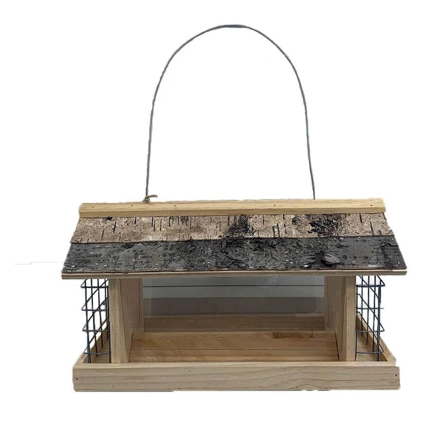 Cette mangeoire en forme de maison très esthétique avec sa grande taille vous permettra de nourrir un grand nombre d’oiseaux dans votre jardin et d’en profiter pour observer ces animaux fascinants. Elle est équipée d’un toit en bouleau et d’un lien en métal très résistant. Au centre vous pourrez déposer des graines en grande quantité et sur les côtés des blocs de graisse.